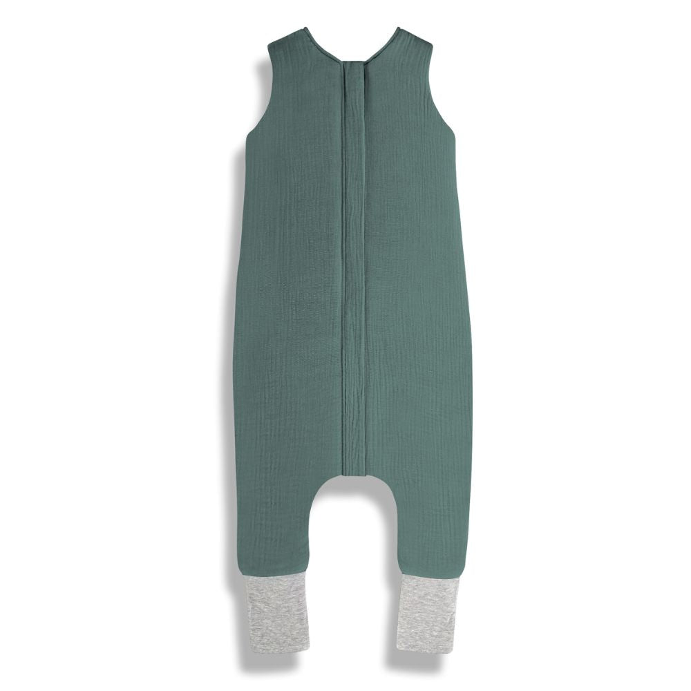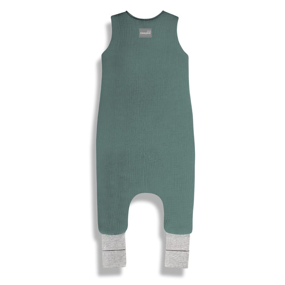 Mušelínový spací pytel Sleepee s nožičkami v barvě mořské zeleně.