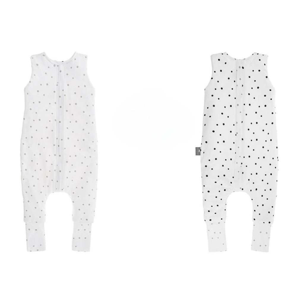 Tento inovativní oboustranný spací pytel s nohama v barvě šedých/černých puntíků (3-4 roky) od společnosti Sleepee.