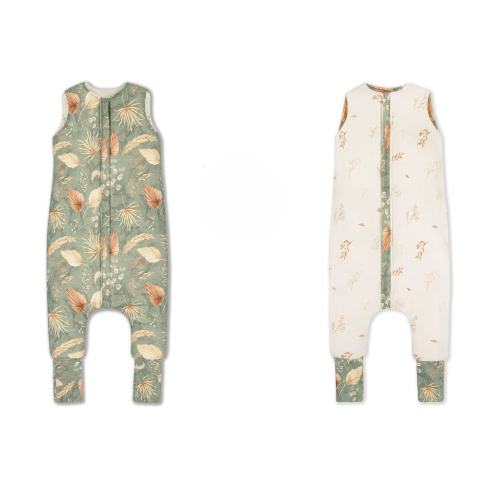 Roztomilý oboustranný spací pytel Sleepee bohemian green, bohemian botanic footed.