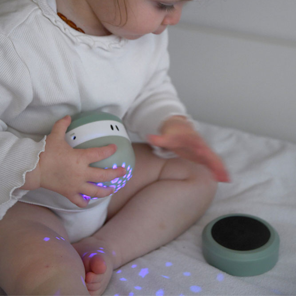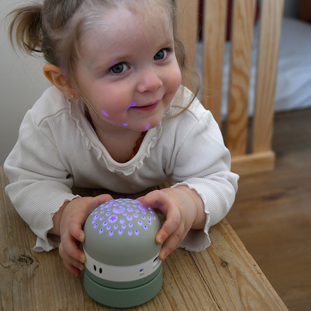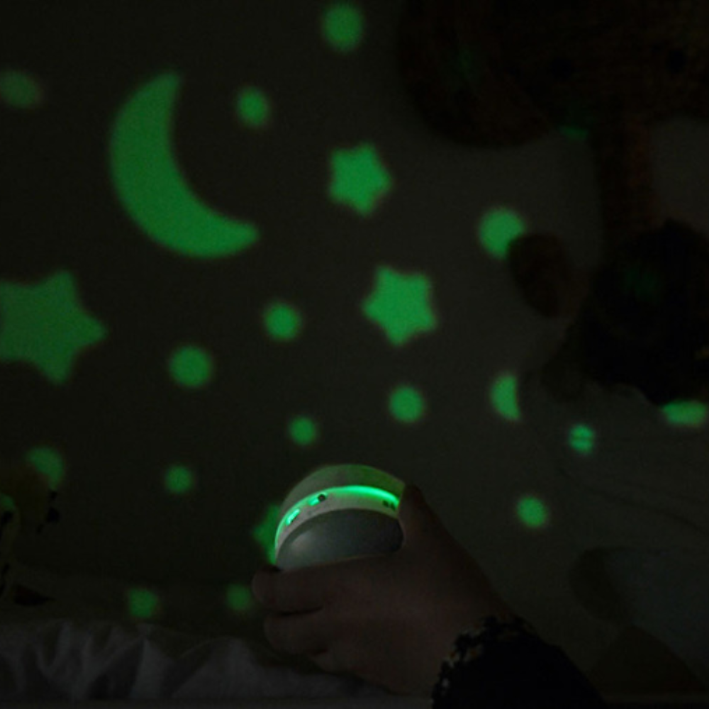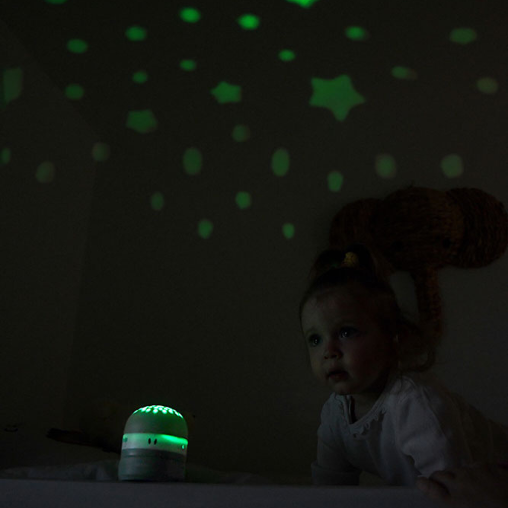 Tento kompaktní projektor pomáhá vašemu děťátku uklidnit se před spaním tím, že ho zahalí do jemné hvězdné oblohy a uklidňujících zvuků.