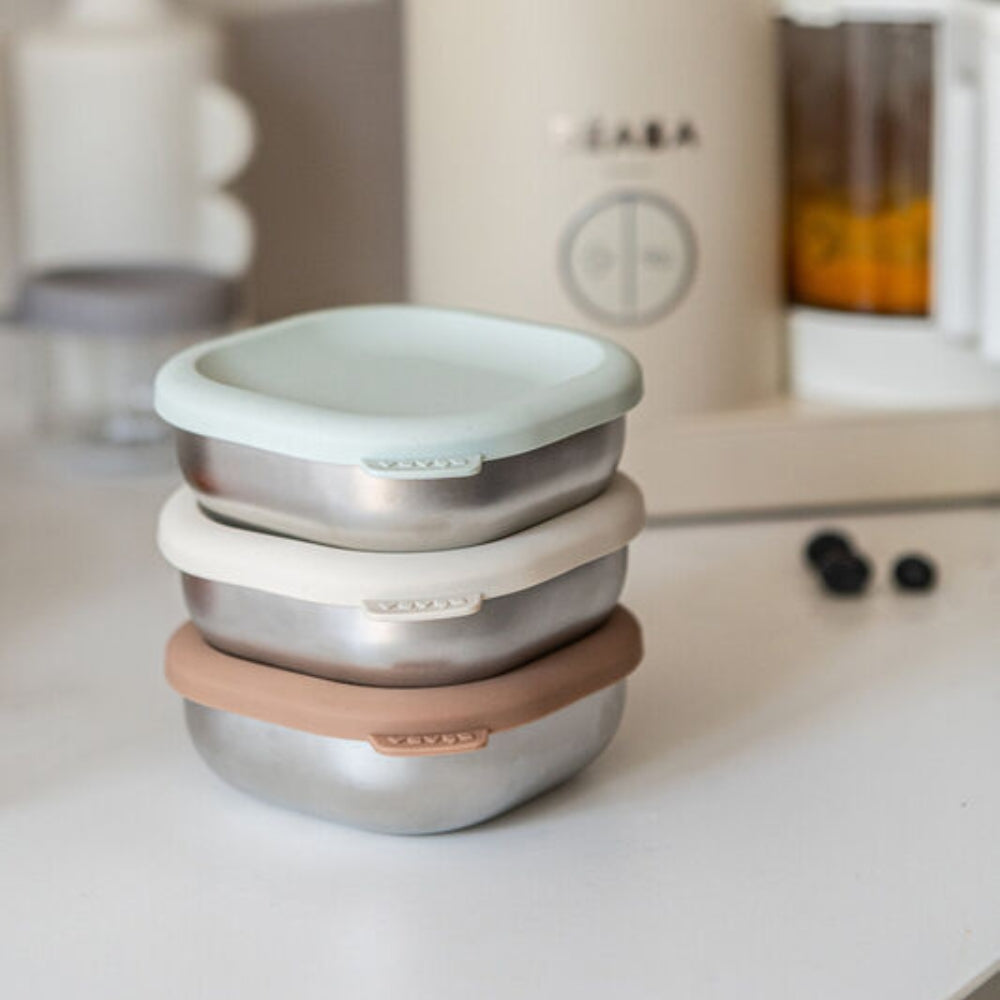 Beaba Nerezové dózy na potraviny se silikonovým víkem 3 ks. Přírodní