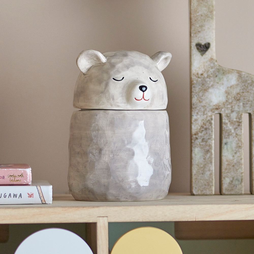Dóza Bloomingville MINI Puk Jar s víkem v šedé barvě je krásný doplněk, který zútulní dětský pokoj a pomůže uspořádat drobnosti.