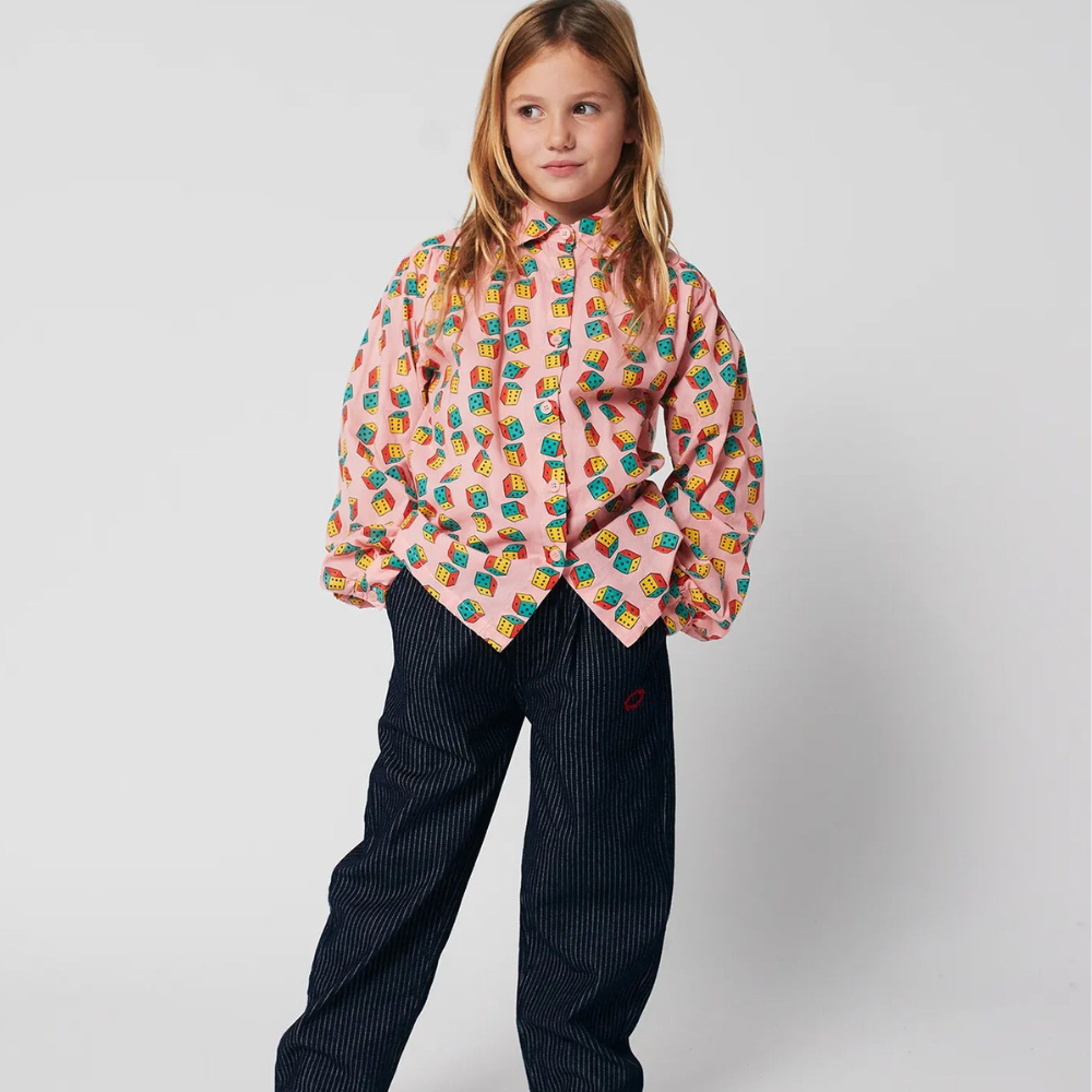 Růžové barevné provedení a potisk s motivem kostek dodávají košili jedinečný, hravý nádech.