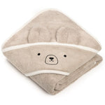 Béžová osuška s kapucí s ušima, očima a nosem.