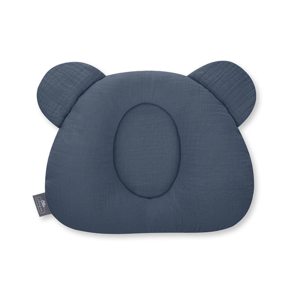 Dětský polštář Sleepee je vyroben z měkkého bavlněného mušelínu a má tvar připomínající hlavu medvídka.