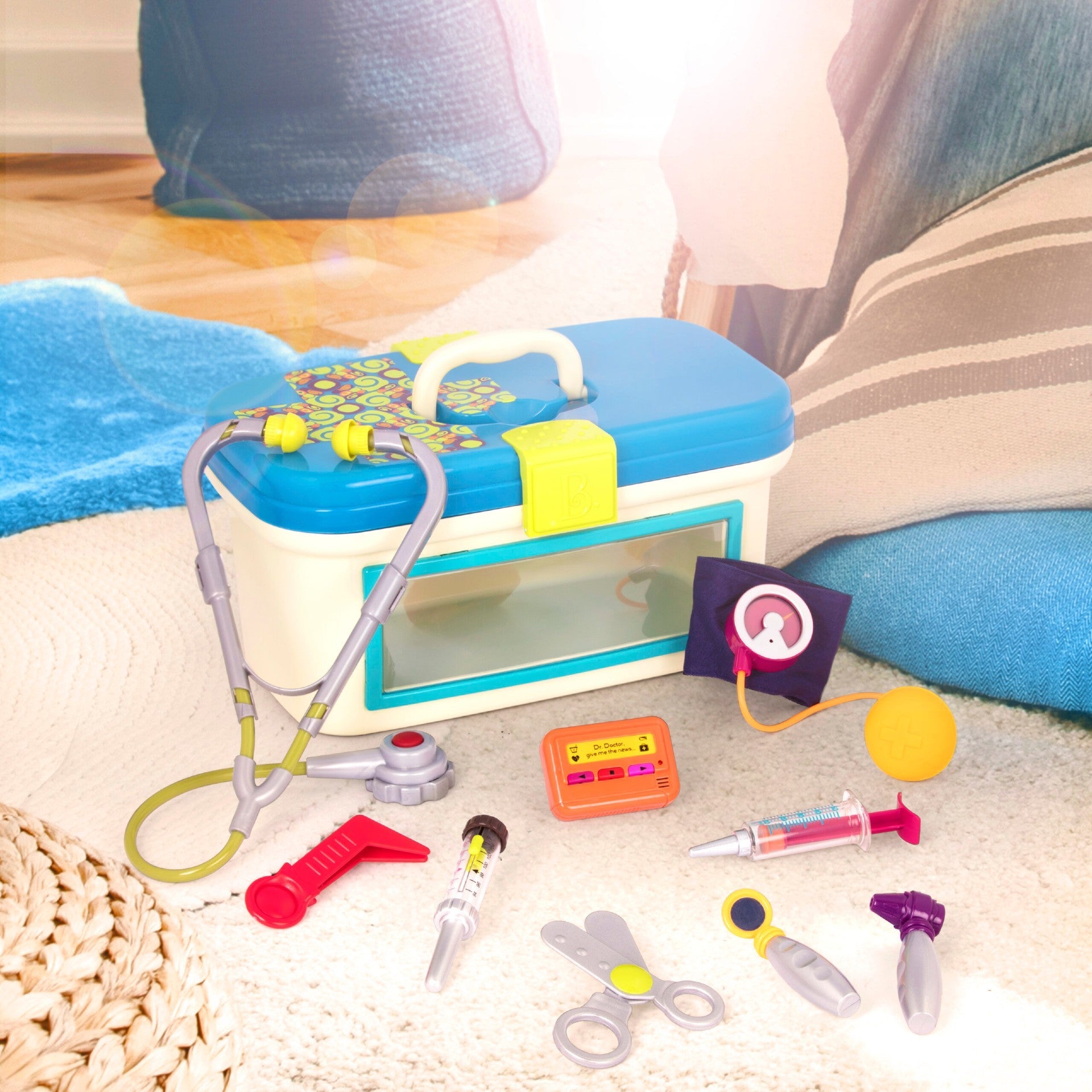 Dětský lékařský set v kufříku od B. toys je fantastická sada 10 lékařských rekvizit.