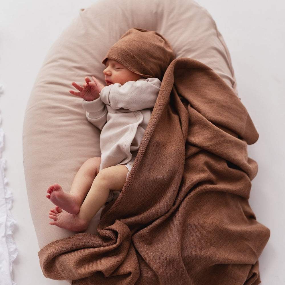Přírodní organická bavlna použitá na potah je příjemná na dotek, prodyšná a vhodná pro citlivou pokožku novorozence.