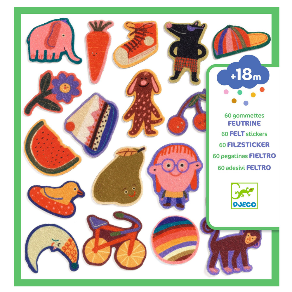 Uvnitř na vás čeká až 60 prvků a plstěné samolepky jsou příjemně měkké, snadno uchopitelné a mají zábavné tvary postaviček a předmětů, které okamžitě vybízejí k akci.