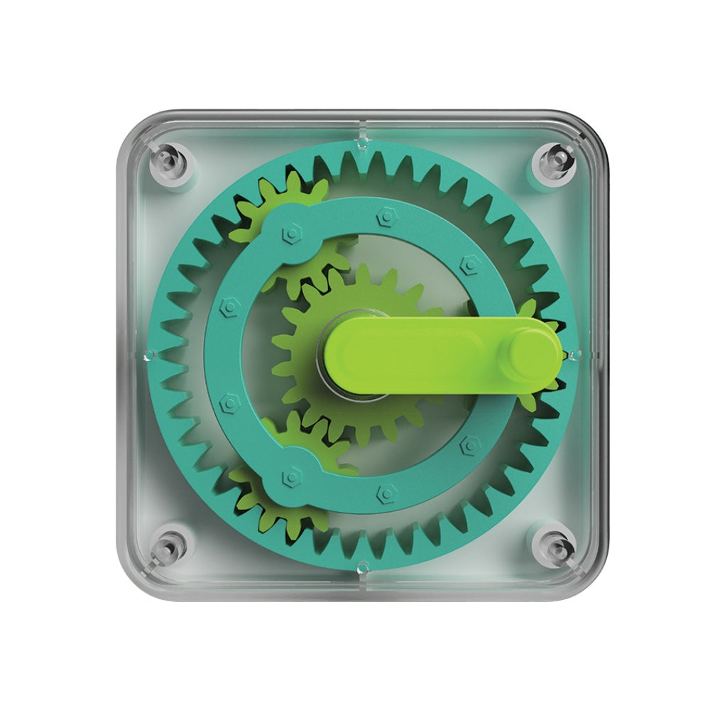 Díky mechanismu aktivovanému klikou může batole sledovat, jak velké kolečko pohybuje třemi menšími kolečky, což mu přináší spoustu uspokojení a podporuje experimentování.