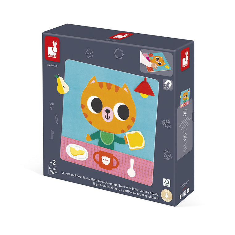 Magnetická skládačka od společnosti Janod podporuje nápaditou hru a umožňuje dítěti ztvárnit rytmus dne formou, která je srozumitelná a blízká jeho zkušenostem.