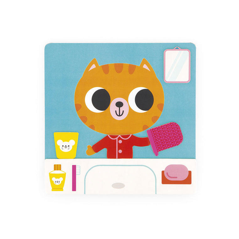 Magnetická skládačka od společnosti Janod je poutavý návrh, který dětem pomáhá pochopit každodenní rutinu atraktivním a přirozeným způsobem.