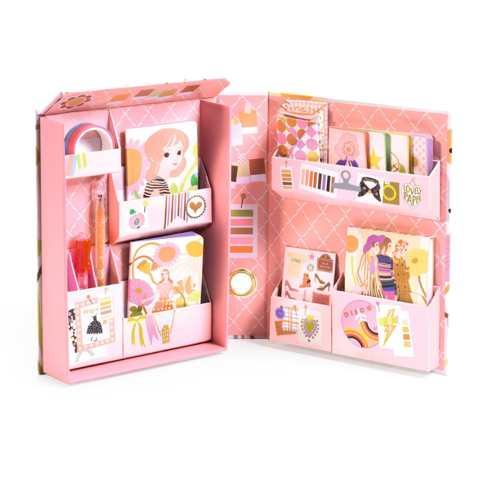 Krásné ilustrace od společnosti Djeco vybízejí k vytváření vlastních příběhů, dopisů a pozvánek a celý se skvěle hodí na doma i na cesty.