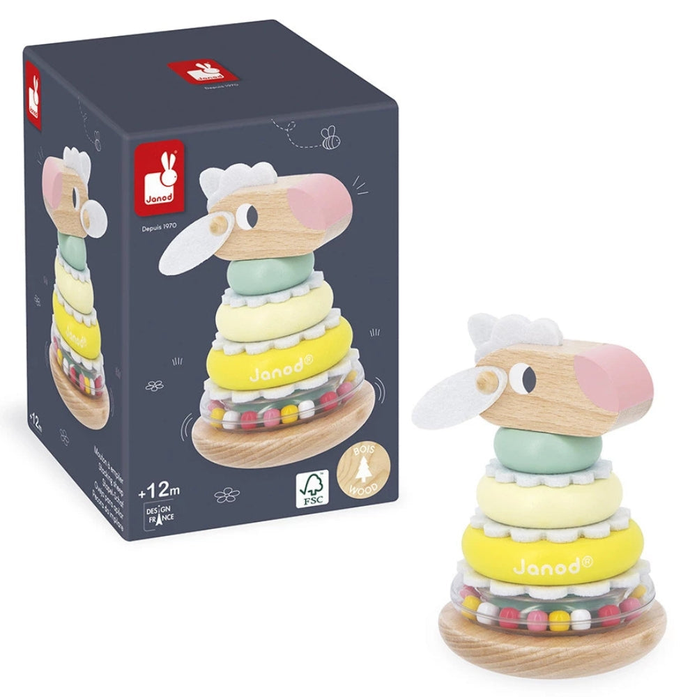 Janod Dětská dřevěná pyramida ovečky Zigolos