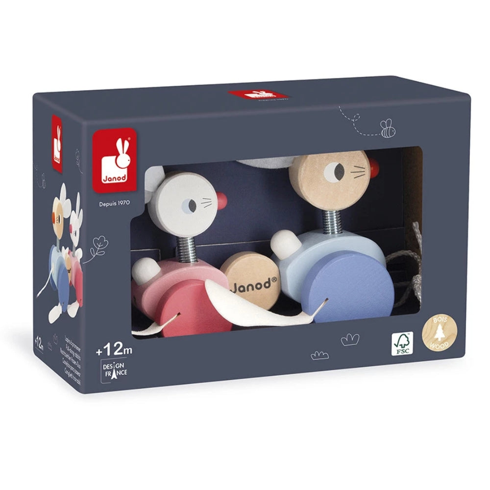 Tahací hračka od firmy Janod se bude dobře hodit jak doma, tak na procházkách, kdy děťátko hrdě vede své malé společníky.