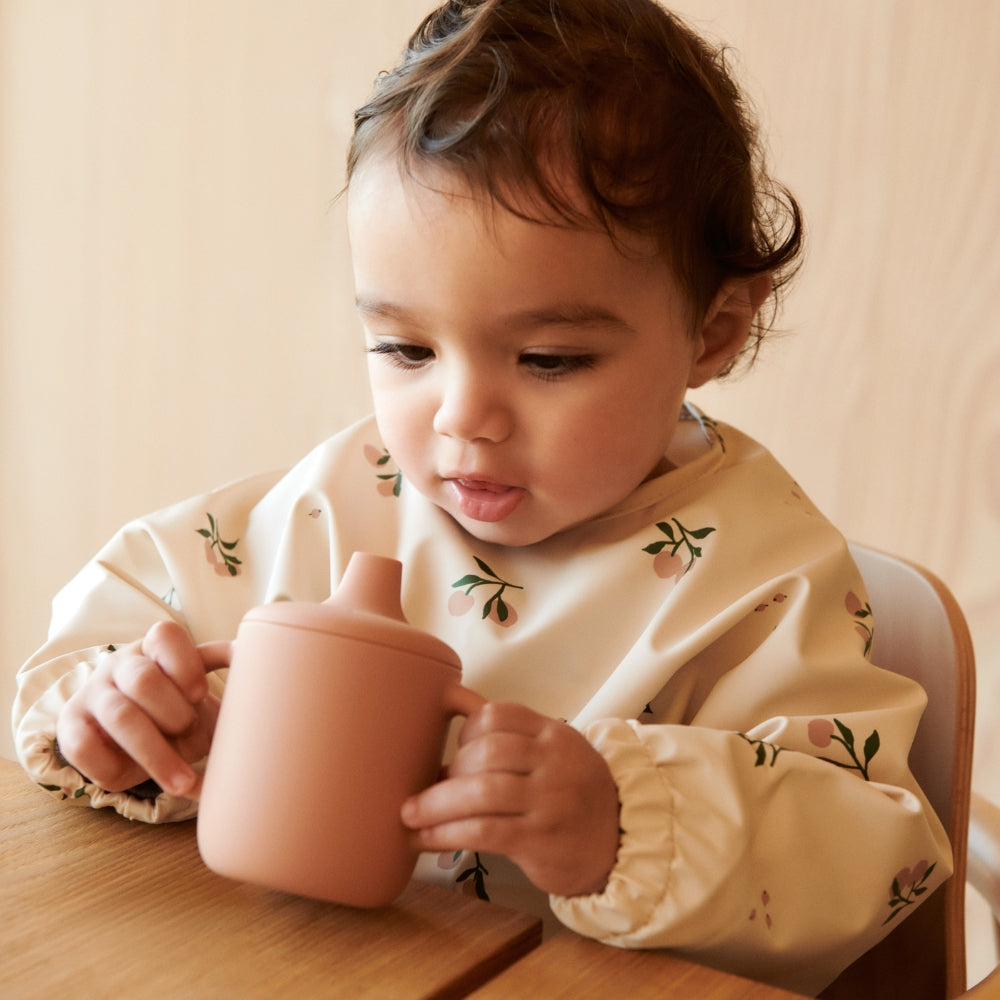 Bryndák Liewood s rukávy Peach / Sea shell mix je velmi praktický a udrží oblečení vašeho dítěte v suchu a čistotě.