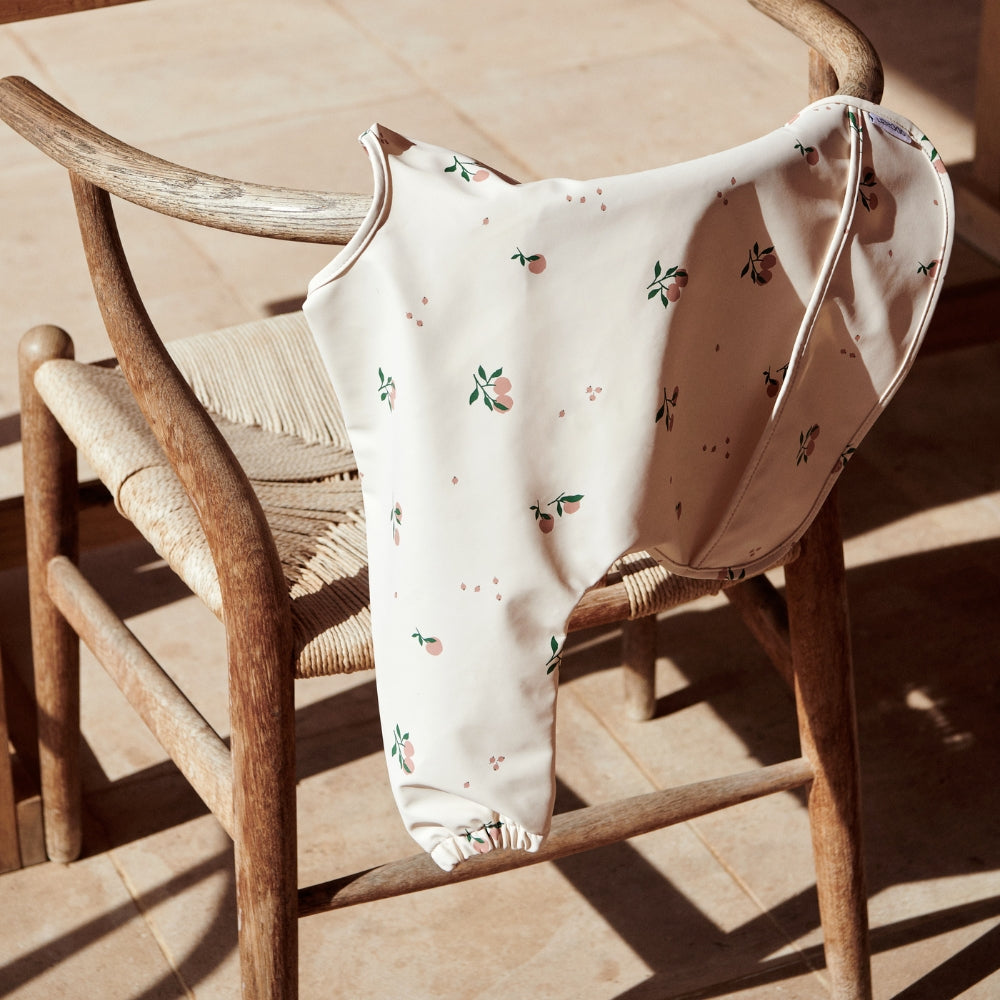 Bryndák Liewood s rukávy má krásný motiv béžové broskve.