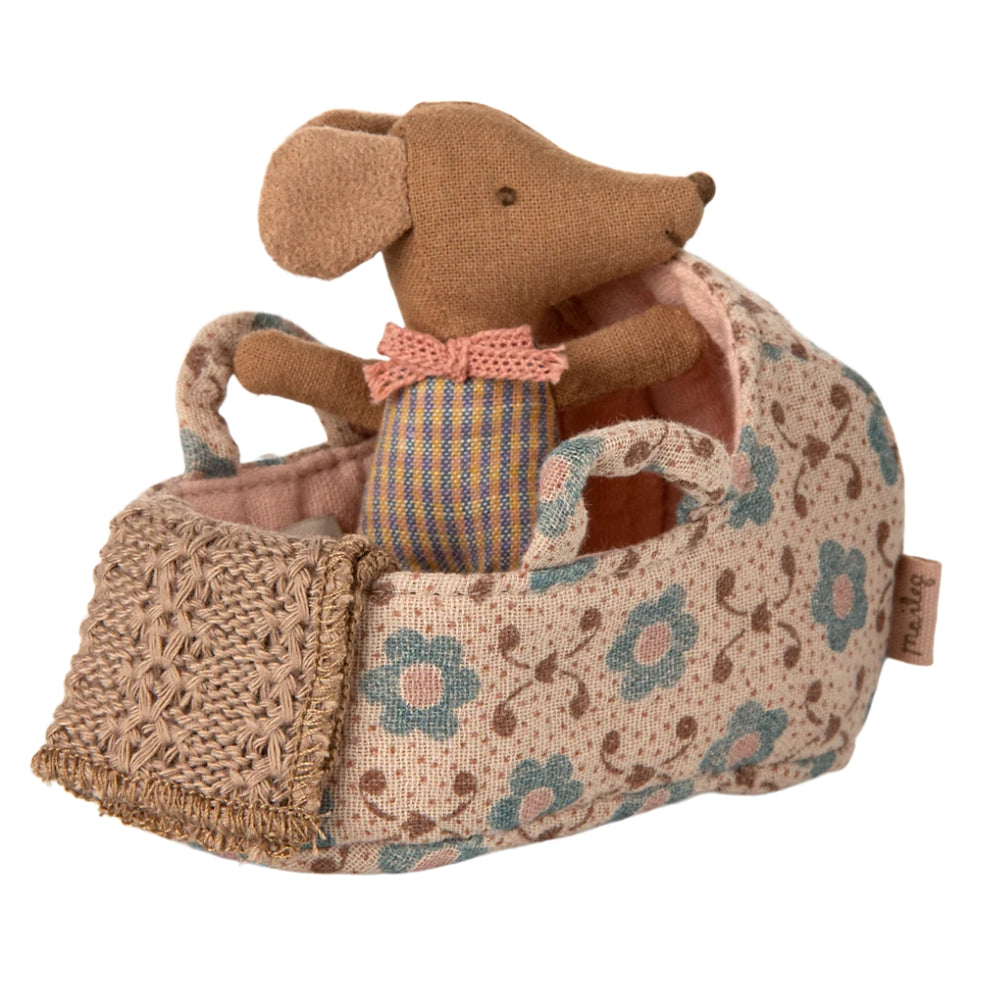 Pohodlný košík poskytuje malým myškám Maileg útulné a bezpečné místo ke spánku kdykoli během dne.
