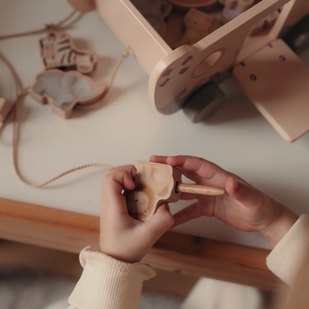 Jedná se o ideální sadu pro učení prací - batole třídí, uspořádává, navléká a válcuje a dřevěná loďka na kolečkách se stane základem pro nekonečné scény a cesty.
