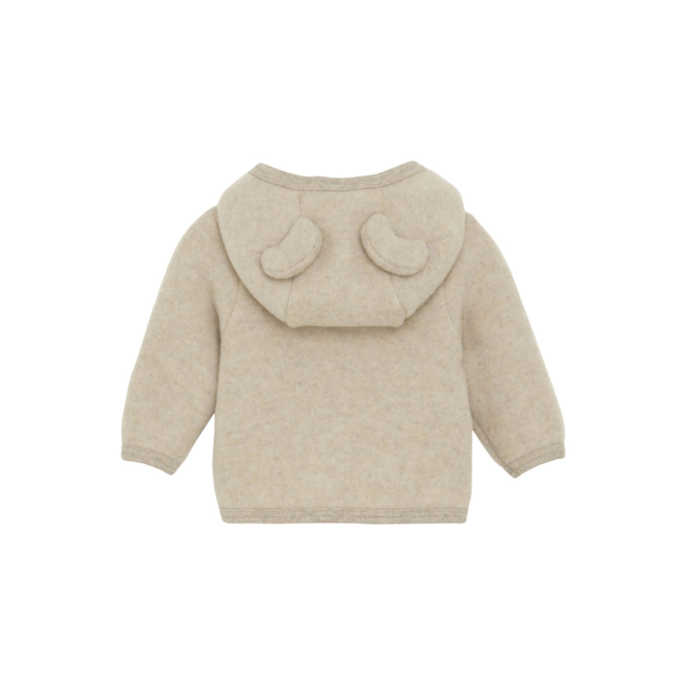Bunda má praktickou kapuci zdobenou roztomilými medvědími oušky, která jí dodávají zvláštní nádech.