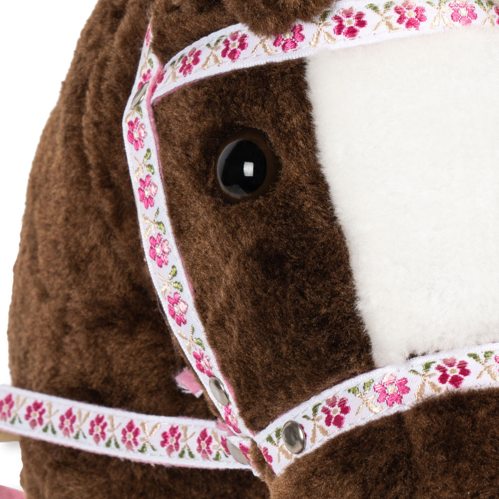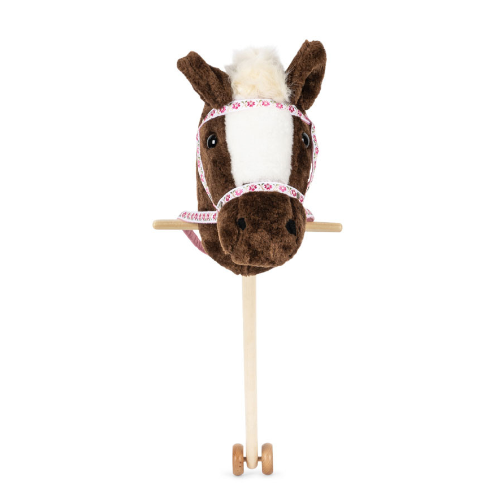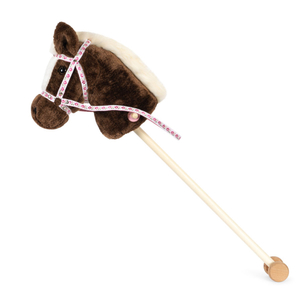 Hlava je připevněna k dřevěné tyči s kolečky, takže se vaše dítě může plynule otáčet a jet přesně tam, kam ho zavede jeho fantazie.