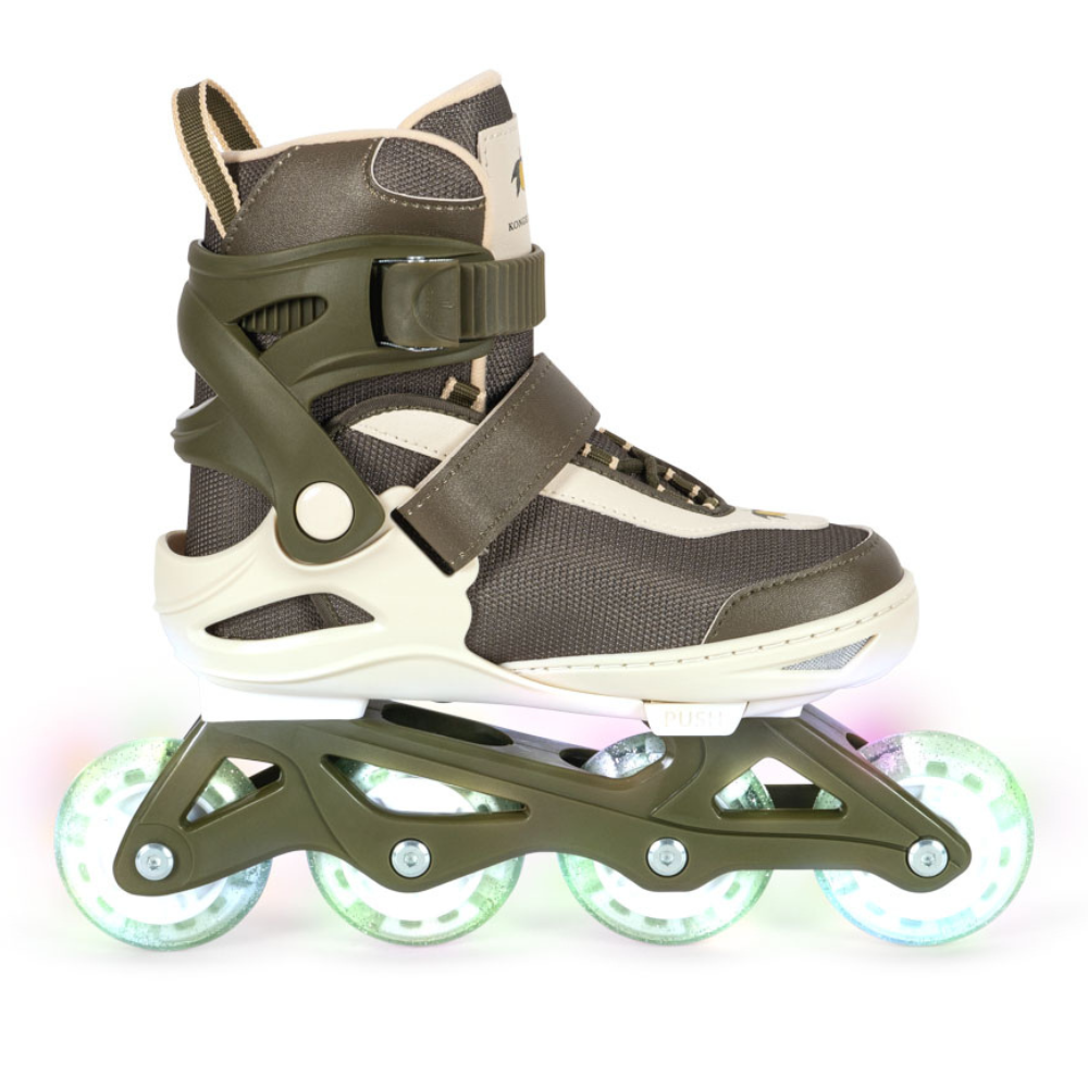 Dětské kolečkové brusle Konges Slojd jsou klasické brusle, které při jízdě září a promění každou procházku v barevné dobrodružství a další motivaci k pohybu venku.