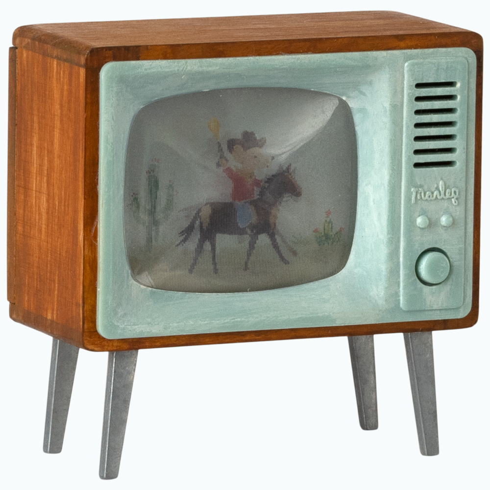Televizor Maileg je rozkošným doplňkem myšího domečku, který okamžitě vytvoří útulnou atmosféru.