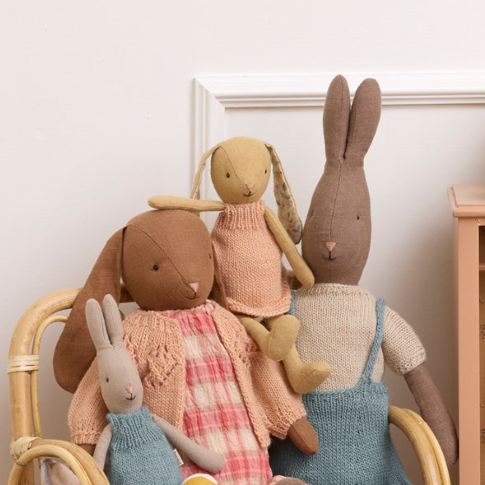Maileg - klasický, měkký a rozkošný králíček v šatech, který okamžitě vybízí k mazlení a hraní.