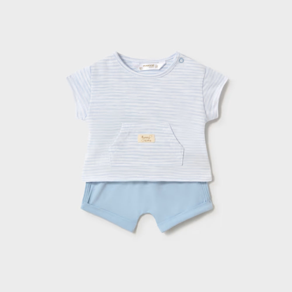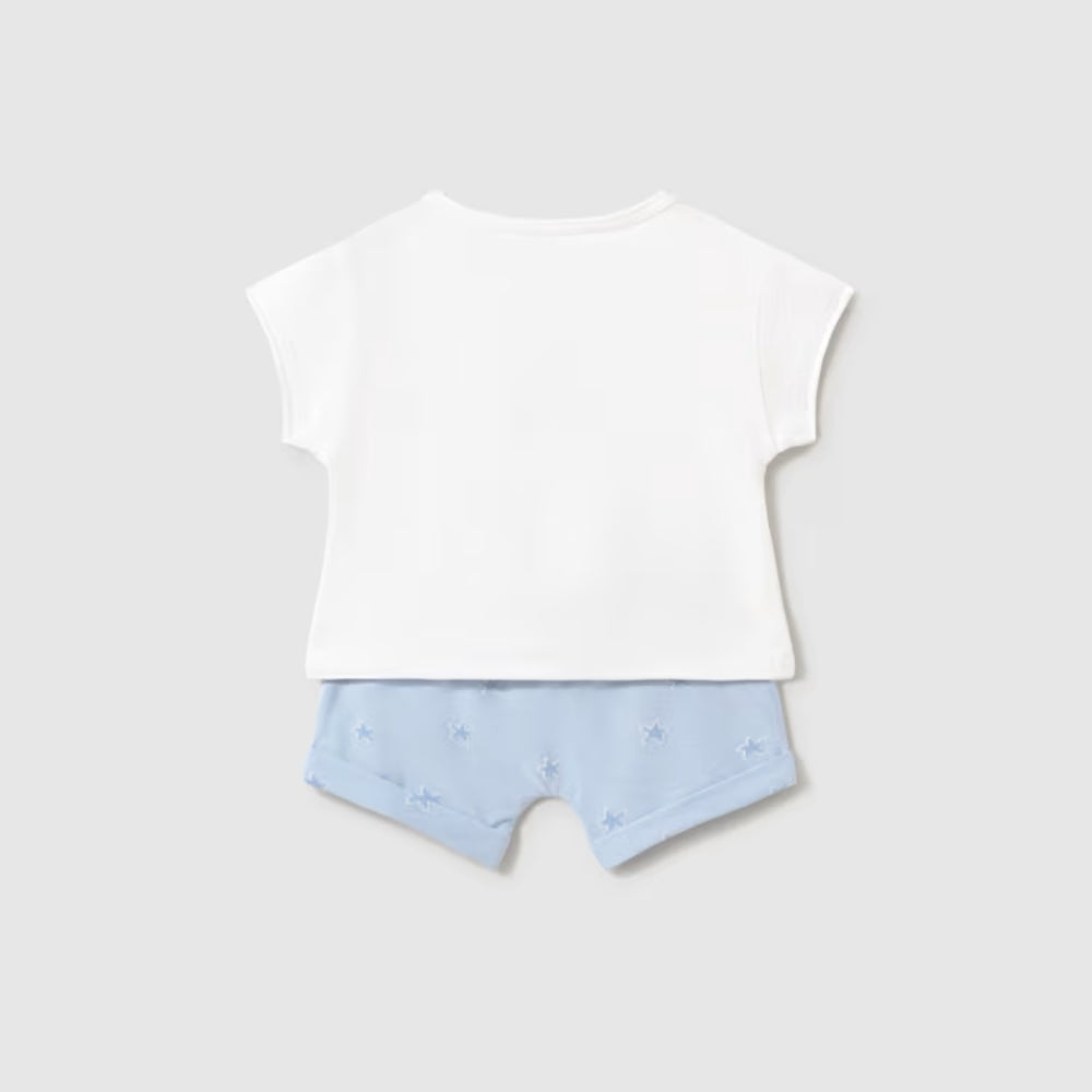 Sada Mayoral obsahuje dva lehké topy a dva páry krátkých šortek, takže je snadné kombinovat jednotlivé kousky podle počasí.