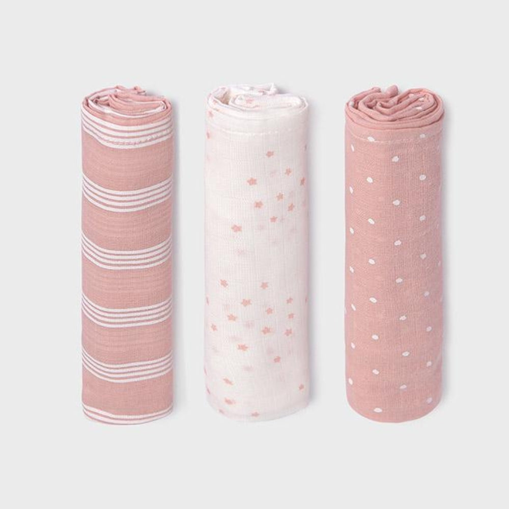 Sada plenek Mayoral je nezbytnou součástí každodenní výbavy, která usnadňuje péči o vaše děťátko od prvních dnů života.