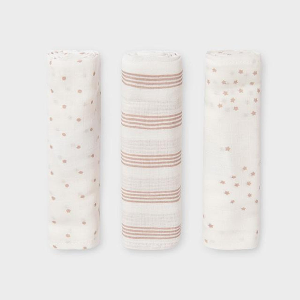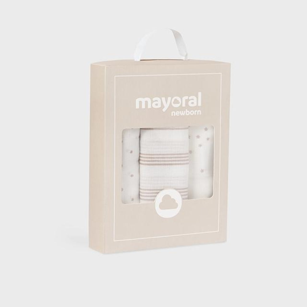 Sada plenek Mayoral je nezbytnou součástí každodenní výbavy, která usnadňuje péči o vaše děťátko od prvních dnů života.