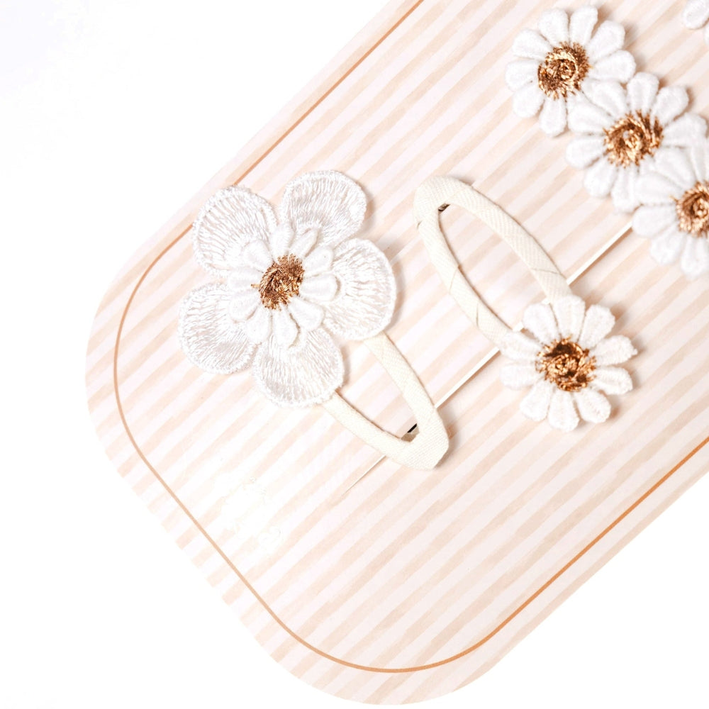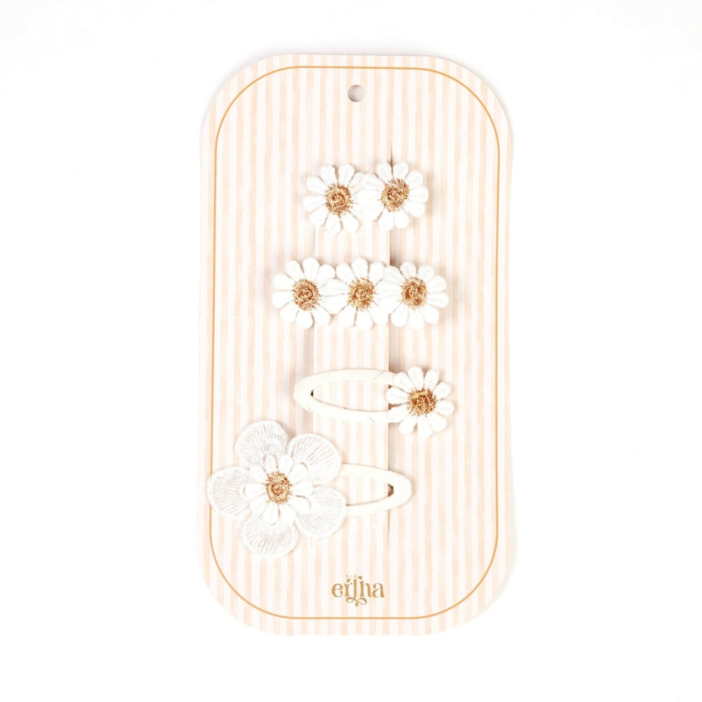 Dívčí sponky do vlasů od paní Erthy jsou jemnou sadou čtyř ozdob do vlasů inspirovanou půvabem polních sedmikrásek.