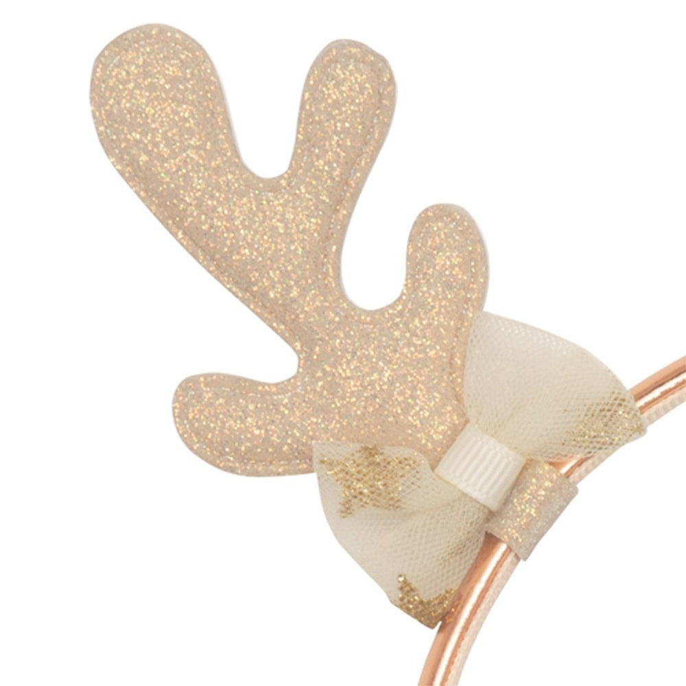 Je vyrobena ve zlaté barvě s měkkými sobími rohy zdobenými třpytivými glitry, krásně podtrhuje dětský půvab a je ideální na Vánoce nebo zimní večírky.