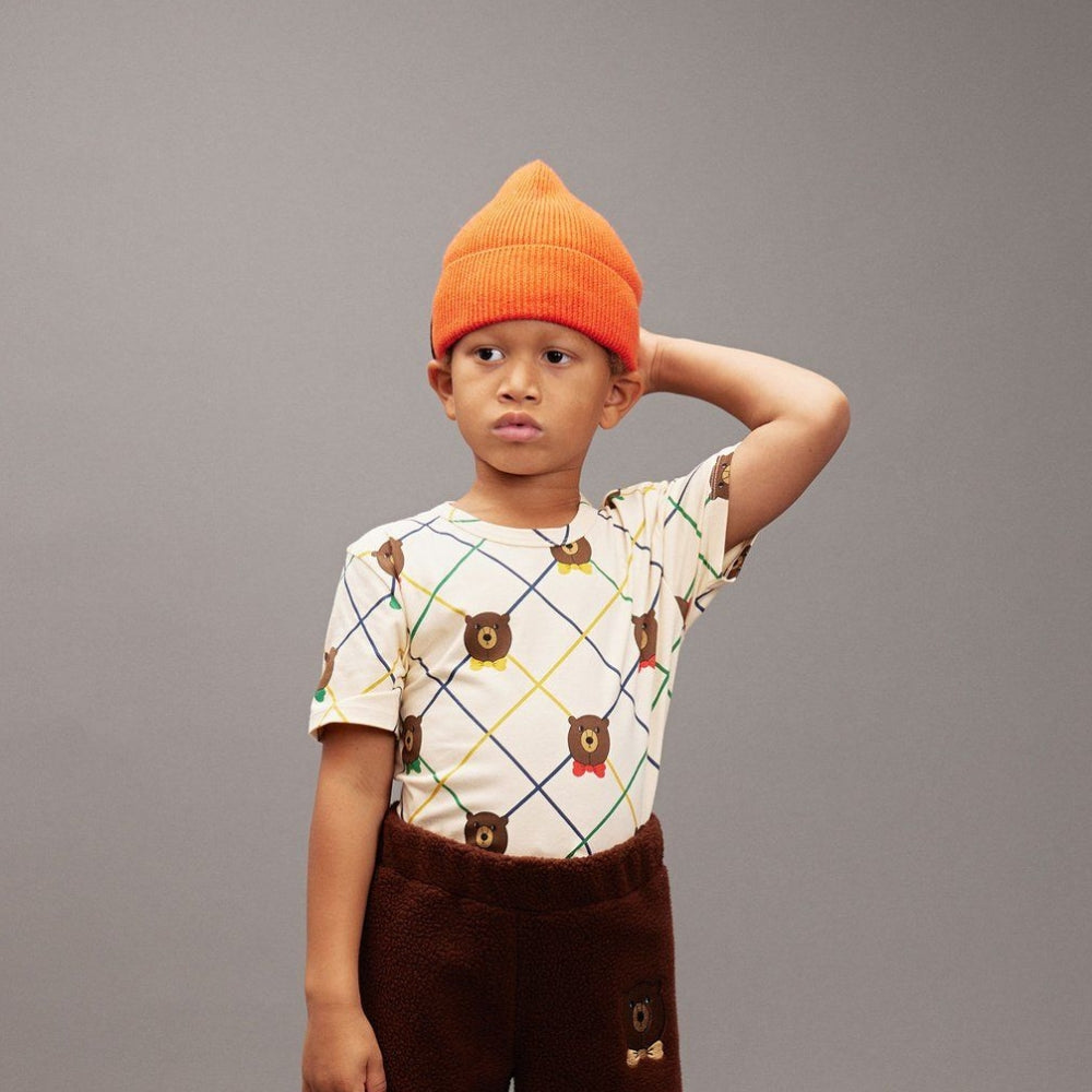 Mini Rodini Dětské tričko s dlouhým rukávem Bear check Ecru