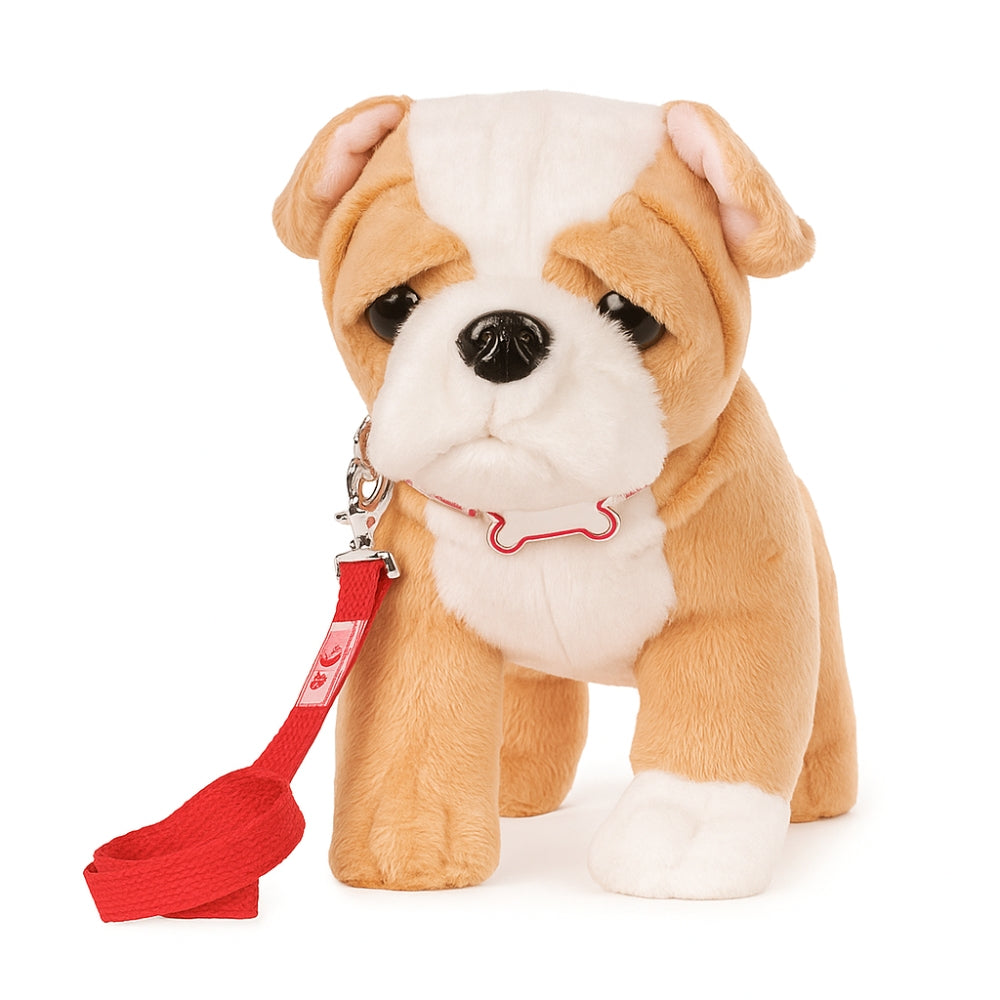 Plyšové štěně Our Generation Bulldog je rozkošné plyšové štěně s obojkem a vodítkem, připravené na procházky a každodenní péči.