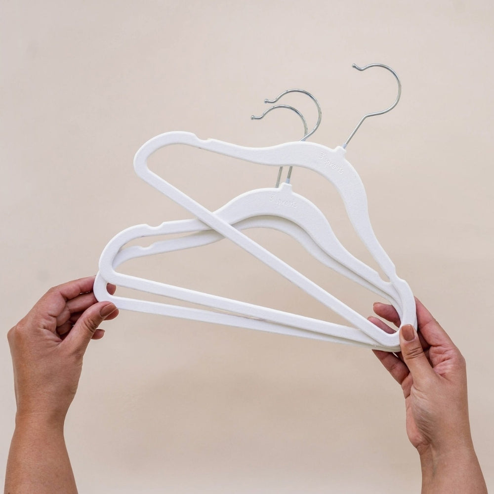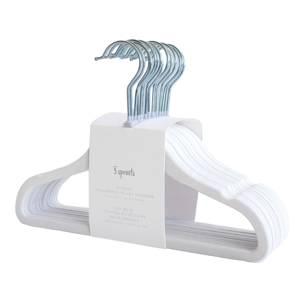 Dětská velurová ramínka bílá 15 ks od kanadské značky 3 Sprouts jsou skvělým nápadem, jak vybavit šatník vašeho předškoláka.
