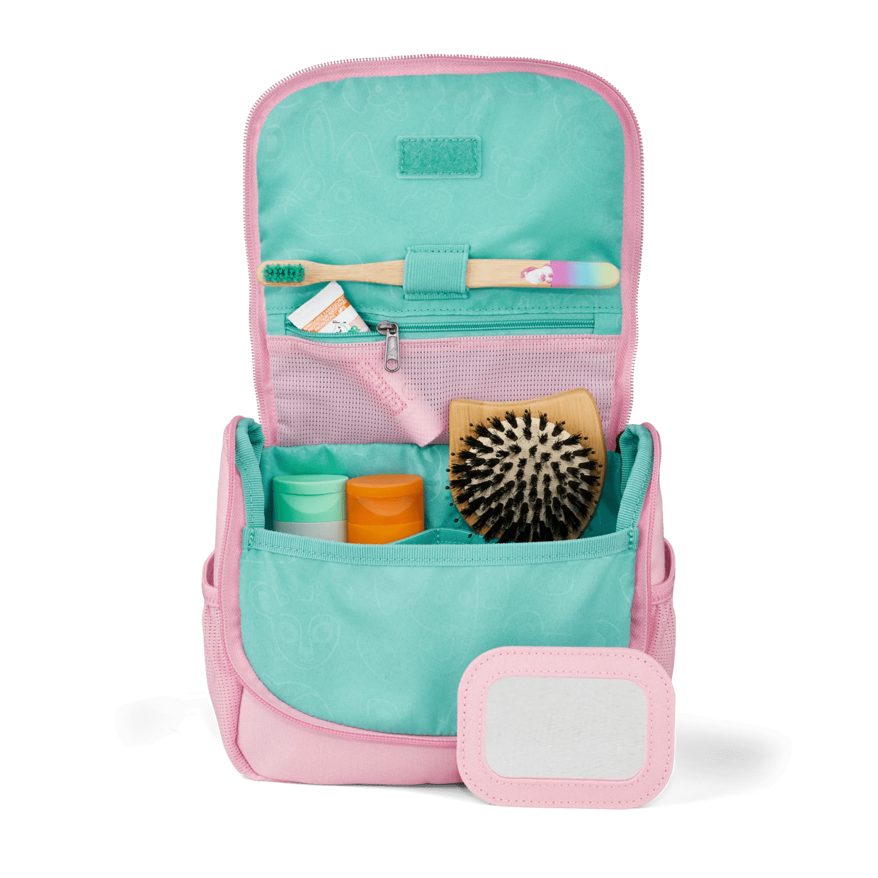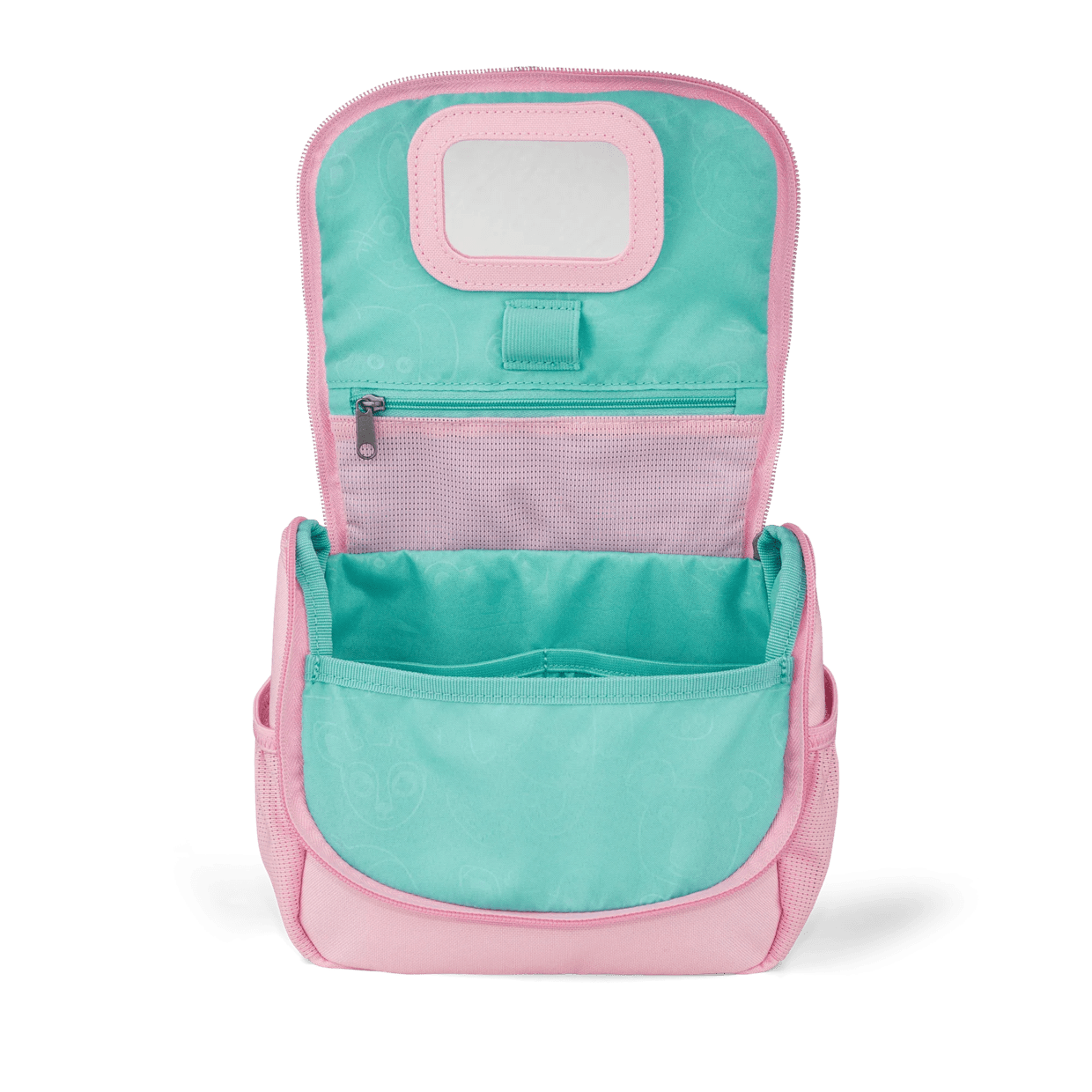 Díky dvěma bočním kapsám z elastické síťoviny i funkčnímu poutku na pomůcky je dětská kosmetická taštička ideální na prázdniny, do školky nebo na víkendové výlety.