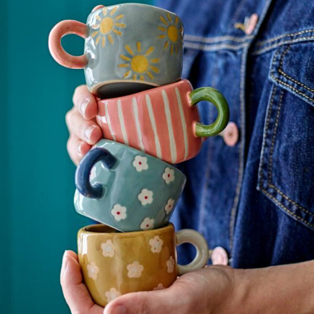 Sada Nini jsou hrnky od společnosti Bloomingville, které okamžitě dodají stolu veselý nádech a i obyčejný čaj bude vypadat slavnostněji. Každý kus má ručně malovaný design v různých barvách, takže hrnky vypadají lehce, hravě a velmi "domácky" - ideální pro rodinné snídaně nebo odpolední čaj.