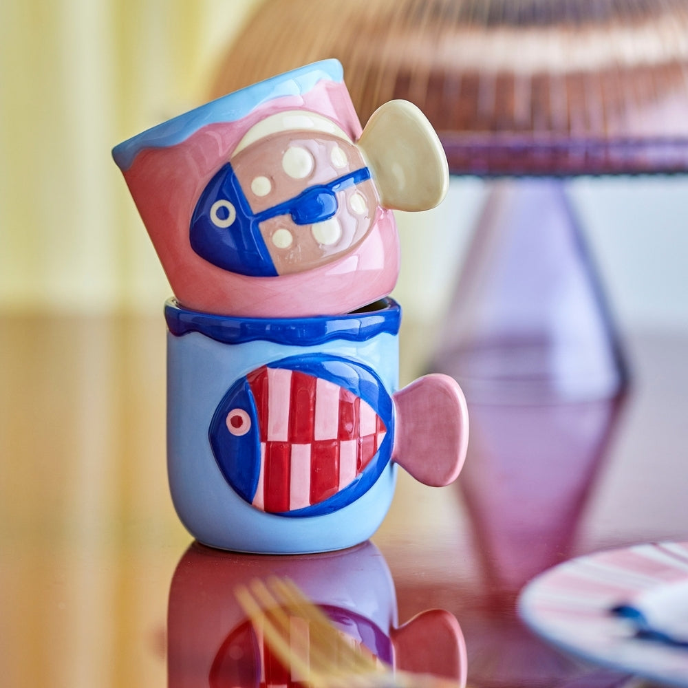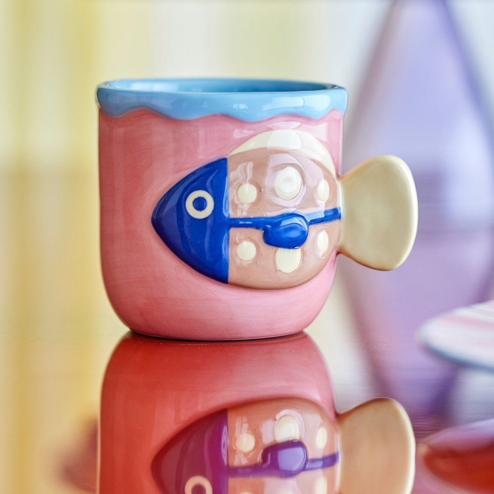 Díky jemnému reliéfnímu motivu ryby a ručně malované povrchové úpravě v jemných pestrobarevných tónech je každý hrnek jedinečný a poutavý. Je to ideální volba pro vaši ranní kávu, čaj nebo kakao.