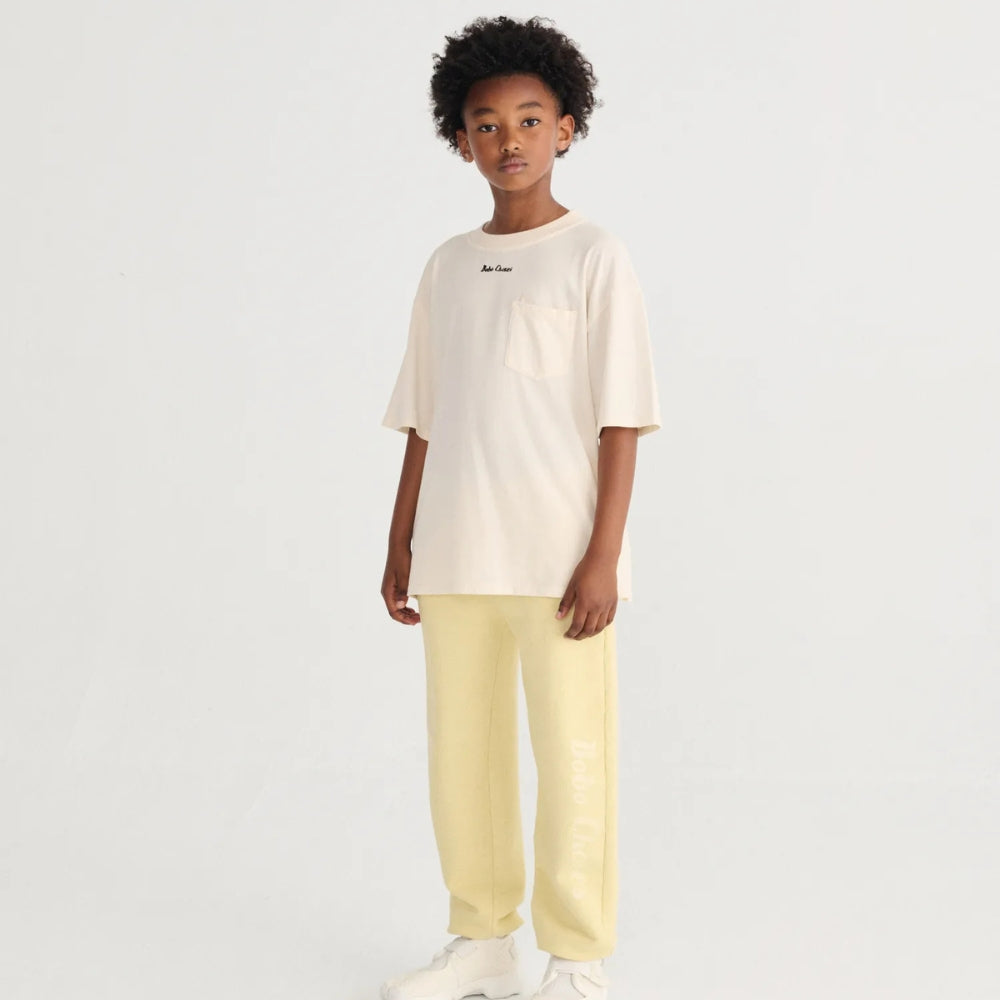 Jasně žlutá barva v kombinaci s výrazným potiskem "Bobo Choses" dodává celkovému vzhledu jedinečný, umělecký nádech, kterým je značka Bobo Choses známá.