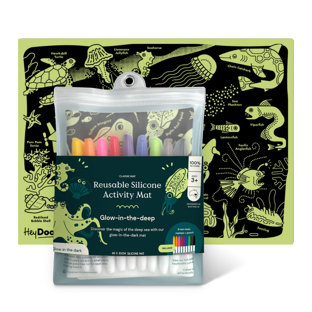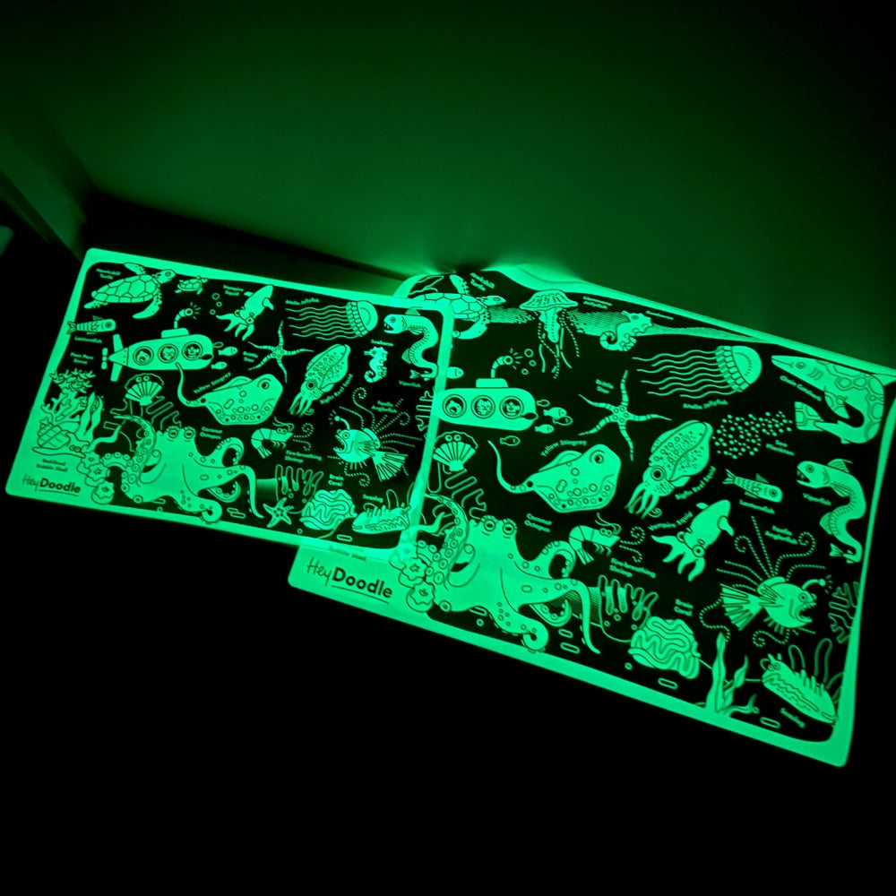 HeyDoodle Glow-in-the-Dark Large Silicone Colouring Mat A3 - Mořské hlubiny