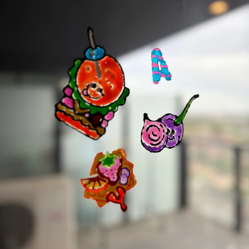Stačí obkreslit tvar, vyplnit ho barvou, počkat, až zaschne, a sloupnout ji, aby vznikla lesklá dekorace, kterou lze nalepit na okno, zrcadlo, sklo nebo jiný hladký povrch.