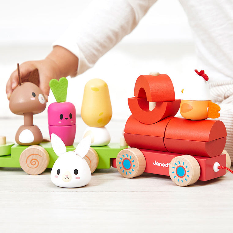 Dětský vláček Janod rozvíjí kreativitu a podporuje volné experimentování a jeho originální design odlišuje sadu od ostatních hraček.
