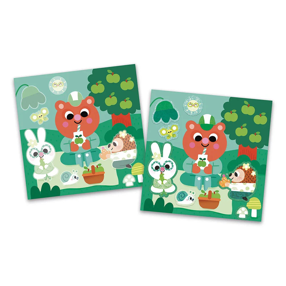 Některé dílky jsou opatřeny jemnými třpytkami, které dodávají ilustracím třpyt a dále motivují ke hře.