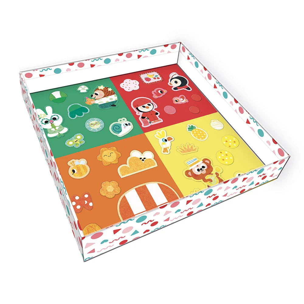 Velikost mozaik byla přizpůsobena malým ručičkám, takže se snadno odlepují a lepí.