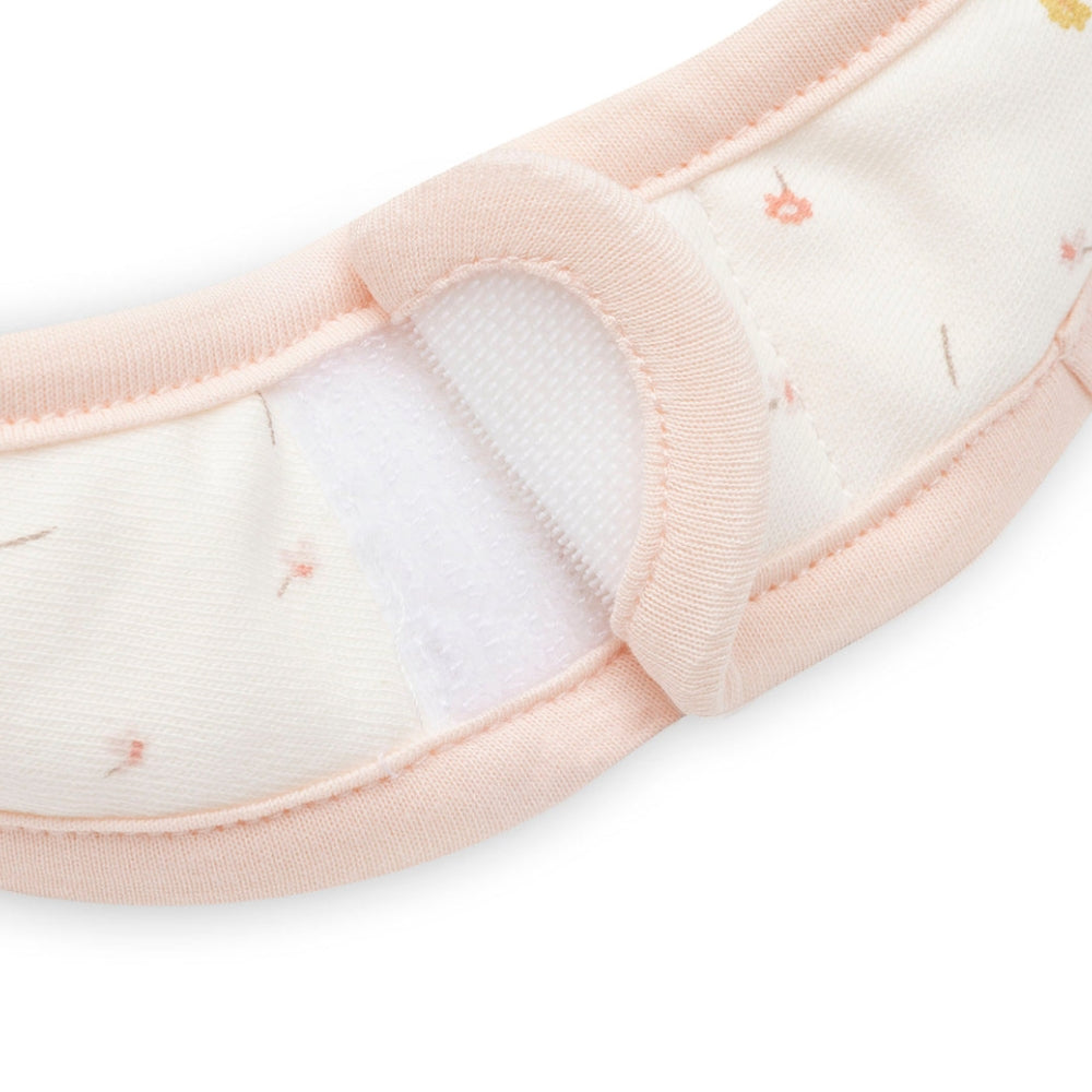 Značka Jollein zajistila pohodlné zapínání na suchý zip, které umožňuje bryndák rychle nasadit a sundat.