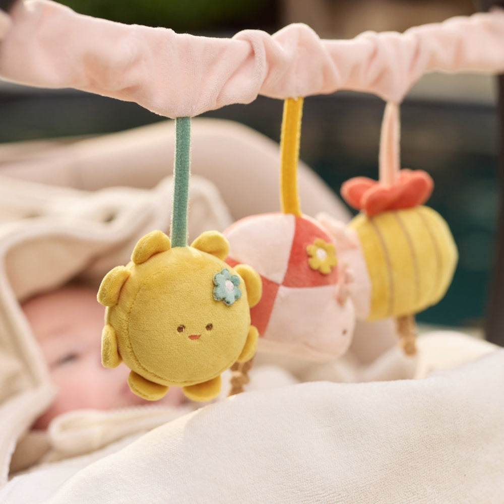 Takový přívěsek na kočárek podporuje rozvoj smyslů a pomáhá zaměstnat dítě v kočárku, autosedačce nebo nosítku.