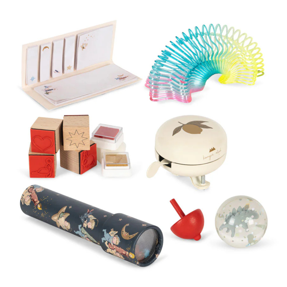 - Sada obsahuje: Vánoční tetování, malého medvídka, knihu aktivit (20 stran), 12 metalických pastelek, kaleidoskop, kouzelnou pružinu, tetovací tužky se šablonami, samolepky, spinner, karetní hru "Černá kočka", skákací míč, paměťovou hru (30 ks), samolepky na okno (2 listy), zvonek na kolo, omalovánky A5 (20 stran), razítka, dekorace, ozdobné kamínky, 4 kouzelné fixy, zápisník, minipuzzle, fixy na okno (2 ks).), pravítko a třpytivé tužky