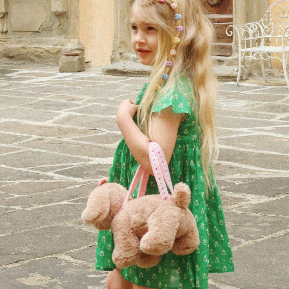 Pejskova taška Konges Slojd tak v sobě spojuje funkci hračky, první "módní" kabelky a plyšové hračky - ideální jako dárek pro holčičku, která si ráda hraje a napodobuje dospělé.
