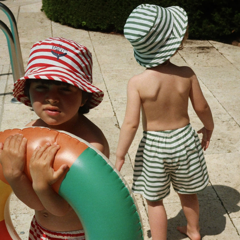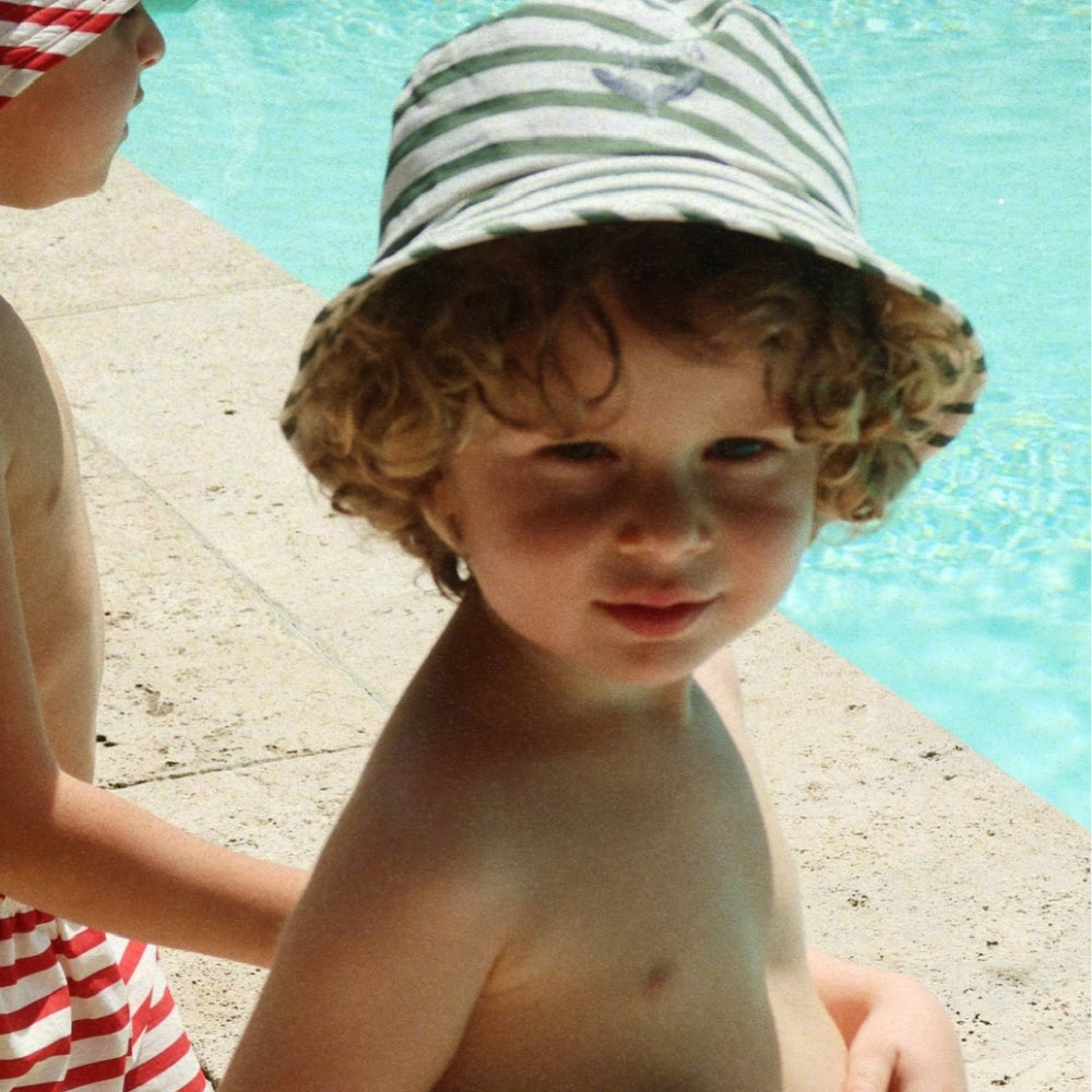 Dětský klobouk od společnosti Konges Slojd je klasický model kbelíkového klobouku, který je určen pro každodenní ochranu batolat během slunečných dnů.