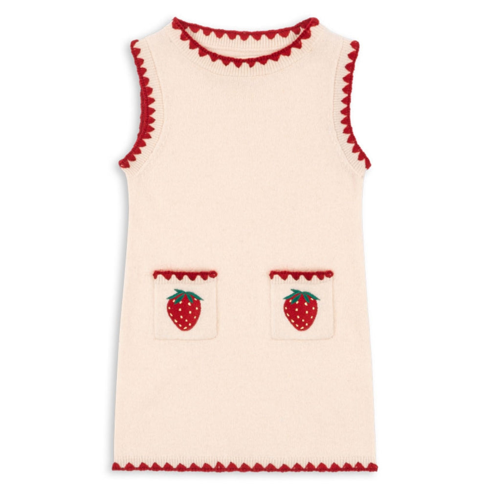 Jemná výšivka ve tvaru jahod dodává šarm a jedinečný nádech, zatímco rovná, mírně vypasovaná silueta a praktické přední kapsy dodávají funkčnost. Dívčí šaty Konges Slojd byly navrženy s ohledem na každodenní nošení - jsou teplé, pohodlné a přitom plné dívčího šarmu.